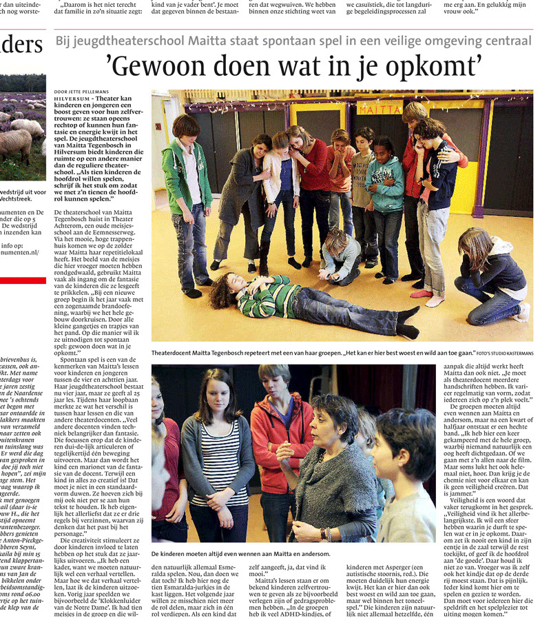 Ik had de groep die hij kwam fotograferen eigenlijk de les ervoor al beloofd te trakteren op een frietje. Maar omdat toen de boel zo onrustig was en ik de orde niet had, zei ik: ‘Nou jongens, zo verdienen we dat frietje nog niet!’ Vet teleurgesteld natuurlijk de bups, dus bij déze les zat iedereen in volle spanning of het nu zou gaan lukken met dat frietje. Dus toen de fotograaf kwam, deed iedereen heel ijverig mee. De fotograaf was snel klaar en nam afscheid. Maar juist voor hij de deur uitging, zei iemand luid en duidelijk: ‘Krijgen we dan nóu friet?!?’ Ik zág de fotograaf reageren, en ik dacht: ‘Huh, Maitta goed met jongeren???’
