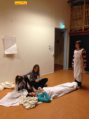 Hier zien we de dood van de koningin en de valse broer, gespeeld door een meisje. Ariel wordt als rol onderzocht en het spelen met de zee.