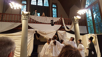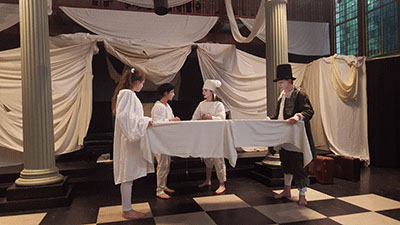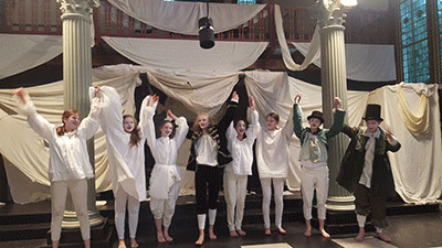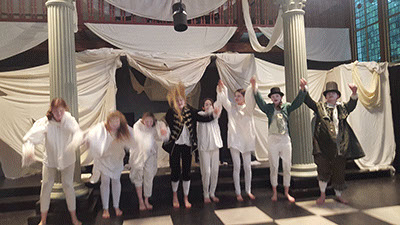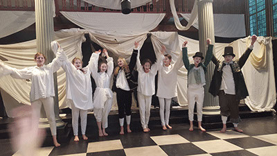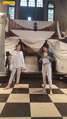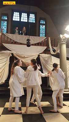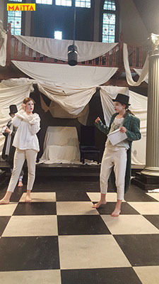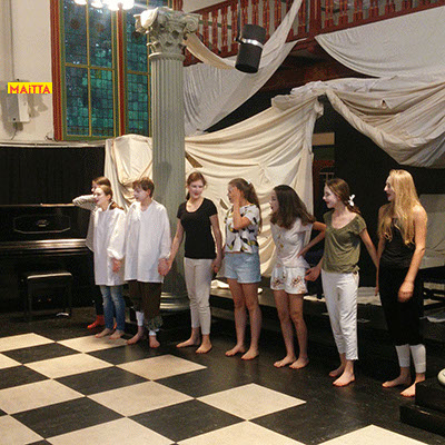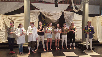 Heerlijk toeven in andere tijden, spelen met commedia dell’arte ingrediënten, samen het ritme vinden van de vertelling, die luchtig maar eigenlijk ook heel complex is. Dat was een super fijne klus die geklaard werd door een grote groep jongeren. Rolwisseling, samenwerken, verbeelden en timen waren de uitdagingen van dit jaar.