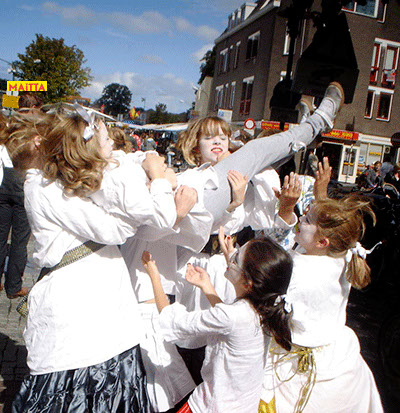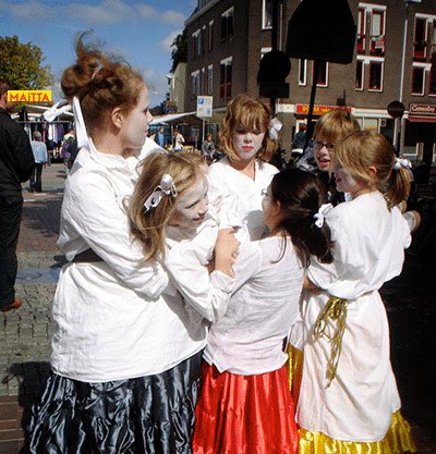 Met een ploeg van superlieve en enthousiaste leerlingen gaan we een hele middag straattheater maken op de Hilversumse Uitmarkt in september. Tijdens de repetitie hiervoor hebben we een verhaallijn bedacht en kostuums uitgezocht. Bovendien hebben we extra aandacht besteed aan de moeilijke elementen van spelen op straat: verstaanbaarheid, duidelijk spel, focus, improviseren, rolvastheid.