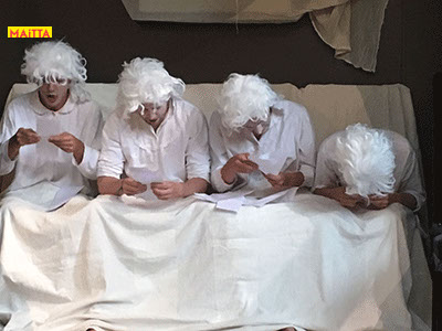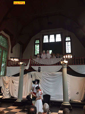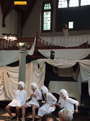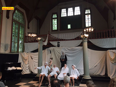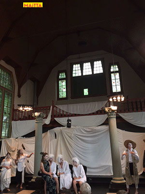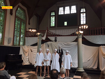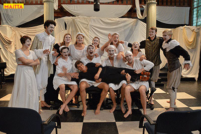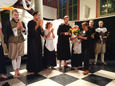 Met een doldwaas team een hilarische komedie neerzetten van Molière was een feest om te doen! Commedia dell’arte stijl vertaald naar groot spel in een decor van vergane glorie. Spelers die in 4-tallen één personage vertolkten. Solisten die door middel van diverse verkleedpartijen met kostuums die tijd en karakter accentueerden, meerdere rollen vertolkten. Scenes door de spelers zelf ontwikkeld en samen in een razende wervelwind tot een bomvolle vertoning gebracht.