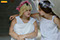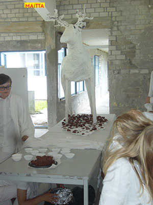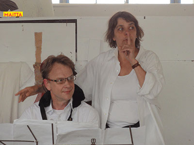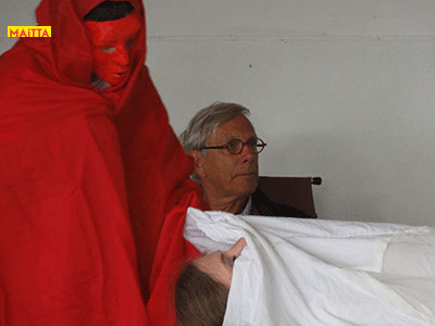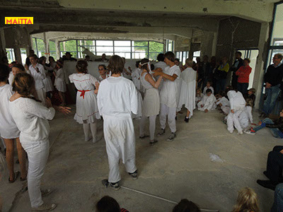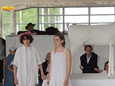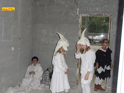 Na het doorspreken van de tekst gaan ze een aantal lessen werken met verschillende spelmaterialen als startpunt om tot spel te komen. Zo werken ze met o.a. kranten, lappen, muziekfragmenten, geluid, gedichten, fotomateriaal, kledingstukken, attributen, maskers enzovoort.