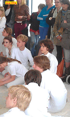 M heeft ervan genoten. Ze vond het dansen ook heel leuk en het meedoen met de groten. Zo mooi die trotse glimgezichten van de kinderen. Knap hoe je alles georgaiseerd had en zo kalm bleef! De muziek erbij was ook mooi en de Maitaart heerlijk. Eigenlijk wilde ik broertje T zondag niet meer mee laten gaan omdat wij het zaterdag al gezien hadden, maar hij wilde perse weer mee. Dus ook voor zeven-jarigen was er genoeg te genieten. J vond het ook mooi. Ze bekeken alles heel aandachtig.