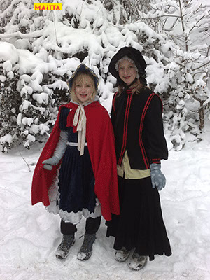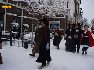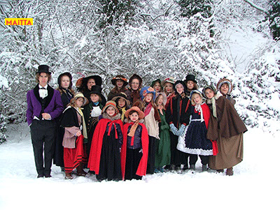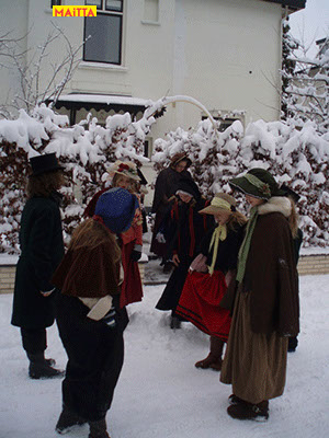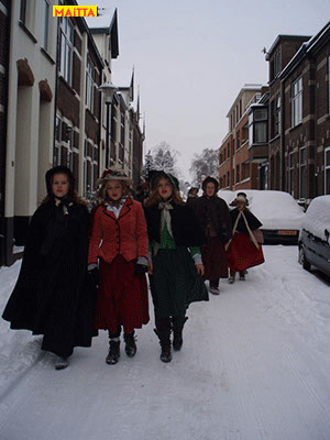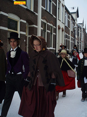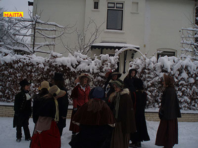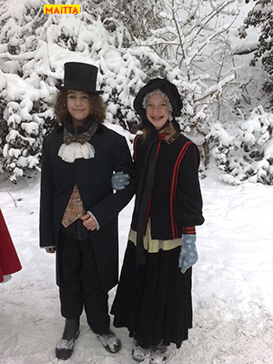 Dit jaar treden we twee maal als Dickens-karakters op: bij Zonnestraal en in de Oude Haven in Hilversum. Het blijft superfijn om je te transformeren naar dat tijdperk, en met deze heftige sneeuw wanen we ons zonder moeite in een film!