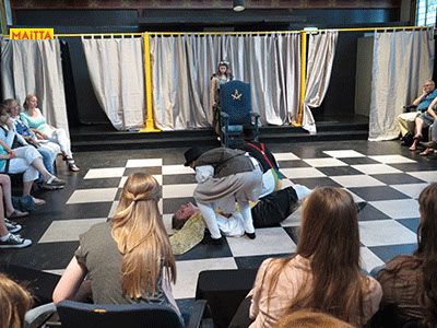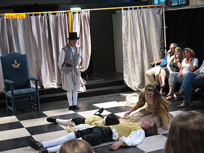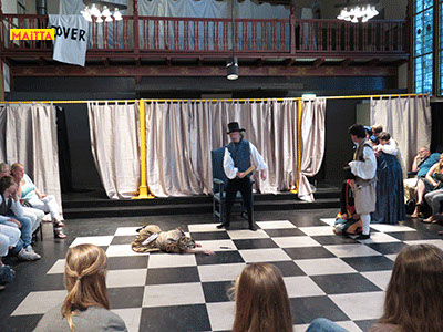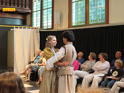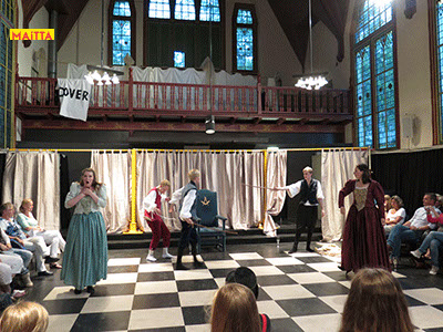 Ik wilde je nog complimenteren met de voorstelling van zondag. We hebben er erg van genoten. Leuk om S zo in zijn rol te zien opgaan. En dat gold ook voor de anderen van dit gezelschap. Gelukkig werd er deze keer goed op tempo gespeeld. Dus bleven we binnen de 2 uur. De locatie was prachtig, maar werd op een gegeven moment wel warm. Bepaald geen lichte kost, maar C was onder de indruk, dus missie geslaagd!