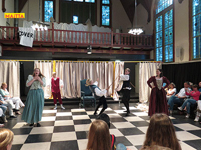 Ja Maitta, het was ook zeer fraai om te bekijken, een fijne voorstelling. Knap gedaan, die groep zat goed in elkaar. De vormgeving van de diverse gruwelijkheden werkte erg suggestief. Prachtig toneel. Bijzonder om je op je  school met je toneelkinderen bezig te zien.