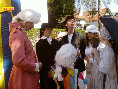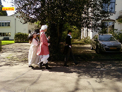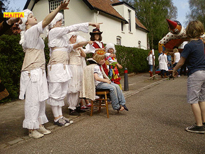 We zijn uitgenodigd om het Koninginnedagfeest in de Boombergbuurt van Hilversum op te komen fleuren. Met een speciaal Koningsspel laten we als lakeien het publiek in onze improvisaties meespelen.