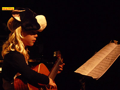 En dan is het zo ver: we gaan optreden! Moeilijk om alles te onthouden en spannend wie er straks allemaal komt kijken, maar uiteindelijk zijn we er klaar voor. Uiteindelijk staan we in Theater Achterom, geschminkt en wel, ondersteunt Hannah ons met livemuziek op haar gitaar en spelen we: Op & In het Nieuws!