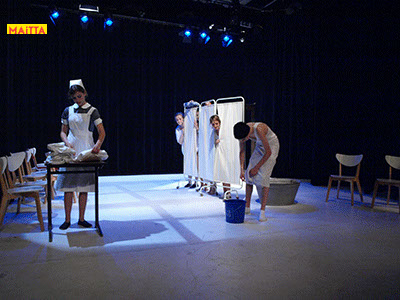 In de prachtige kale ruimte van Duiker zal de enscenering een geheel andere lading krijgen. Bewegingen, ritmen, choreografieën zullen in deze architecturale omgeving sterk tot de verbeelding spreken.