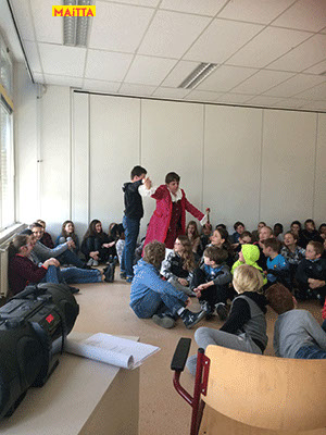 In het schooljaar 2015-2016 is Maitta met enige regelmaat te vinden in de klassen van de basisschool. Vertrekkend vanuit verschillende spelmaterialen geeft Maitta dramalessen die zowel het team als de kinderen inspireren.