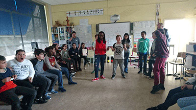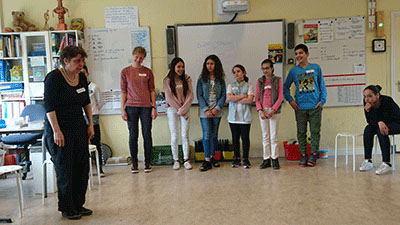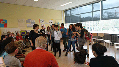 Dramalessen oktober voor ROC leerlingen Welzijn, te Hilversum met als onderwerp: hantering van emoties en conflicten, houding, rollenspel.
