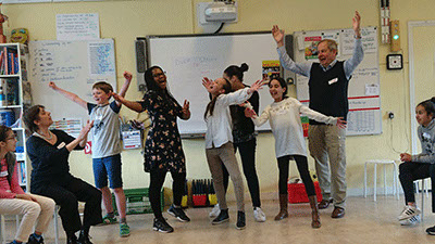 Maitta gaf op OBS de Dubbeldekker in Hilversum voor IMC Basis twee workshops Theater aan groep 7/8. Wat een succes! Maitta straalt enorme rust uit en weet wat ze doet. Ze maakt tijdens de workshop echt contact met de leerlingen. In de workshops zat een heel mooie opbouw die begon met emoties benoemen, herkennen en uitbeelden. Als afsluiter vertelden de leerlingen samen voor publiek een persoonlijk verhaal in beelden. Echt een aanrader!