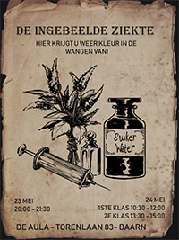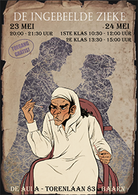 In onze enscenering wordt de rol van Argan vertolkt door twee spelers die u soms tegelijkertijd op de vloer aan het werk kunt zien. Zo ook met de rol van Toinette, de huishoudster. Verder wordt er lustig gewisseld tussen rollen en spelers! De spelers hebben zelf de rollen gekozen die ze graag wilden spelen en het eindresultaat is voortgekomen uit gezamenlijke spelonderzoek. Tevens zullen er ook bij ons muzikale intermezzi zijn van het koor en het schoolorkest en zult u flitsende optredens zien van ons behendig en creatieve decorploeg en de onovertroffen jongleur Pablo! Een nieuwe samenwerking is geboren!