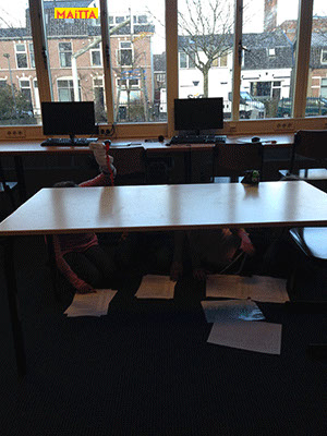 In de laatste drie kwartier van de grote pauze mogen de overblijvers naar de speelzaal, waar Maitta op ze wacht met elke dag een nieuwe opdracht, oefening of spelingang.