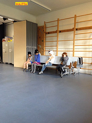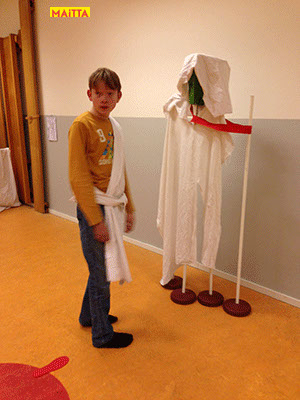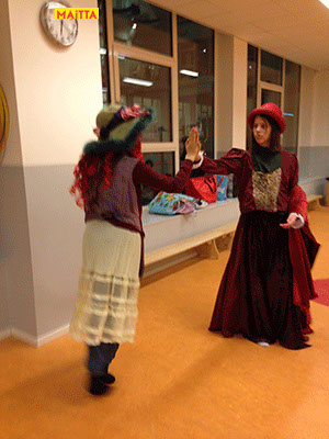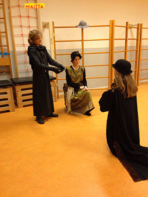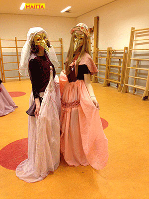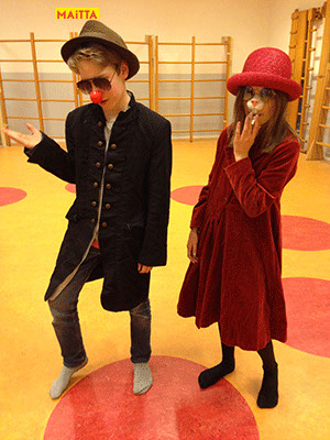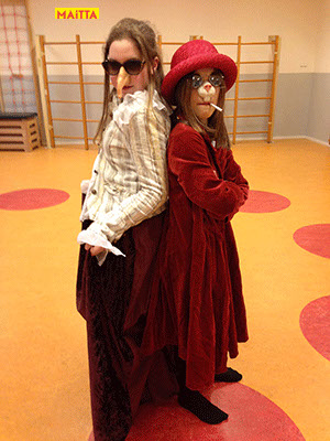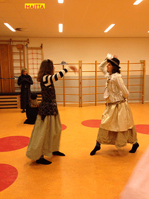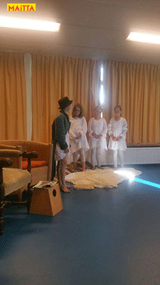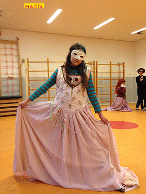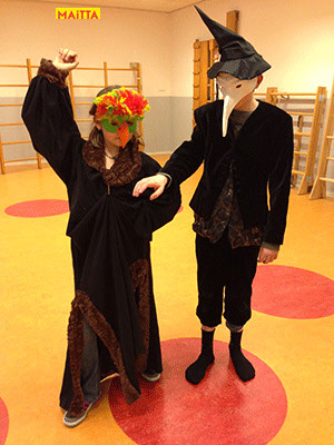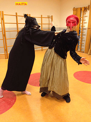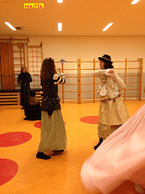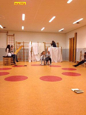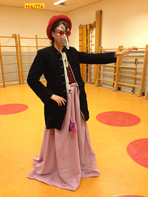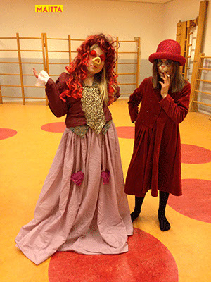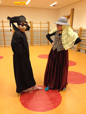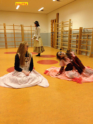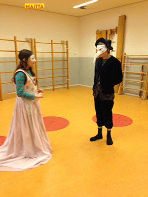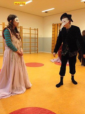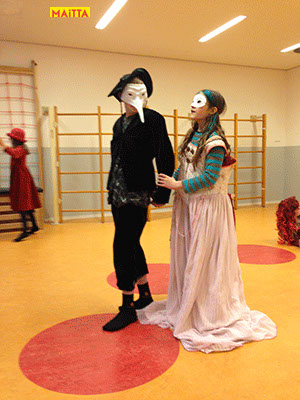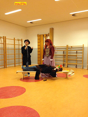Tijdens de lessen wordt er veel geƫxperimenteerd met decor en kostuums.