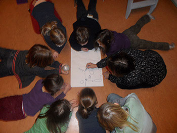We starten met het project Oliver Twist, wat we op de kerstfair van Zonnestraal zullen gaan spelen.We weten dat ons podium heel klein zal zijn: een hutje midden in het bos! Daarachter zal er een tweede hutje zijn waar alle 5 de groepen zich om beurten om kunnen kleden. Deze dag wordt nou echt een ‘uitdaging’ voor ons! Eerst maar eens kijken wat we met het stuk gaan doen. Op de foto de eerste verkenningen van de verschillende personages die in het stuk meedoen.